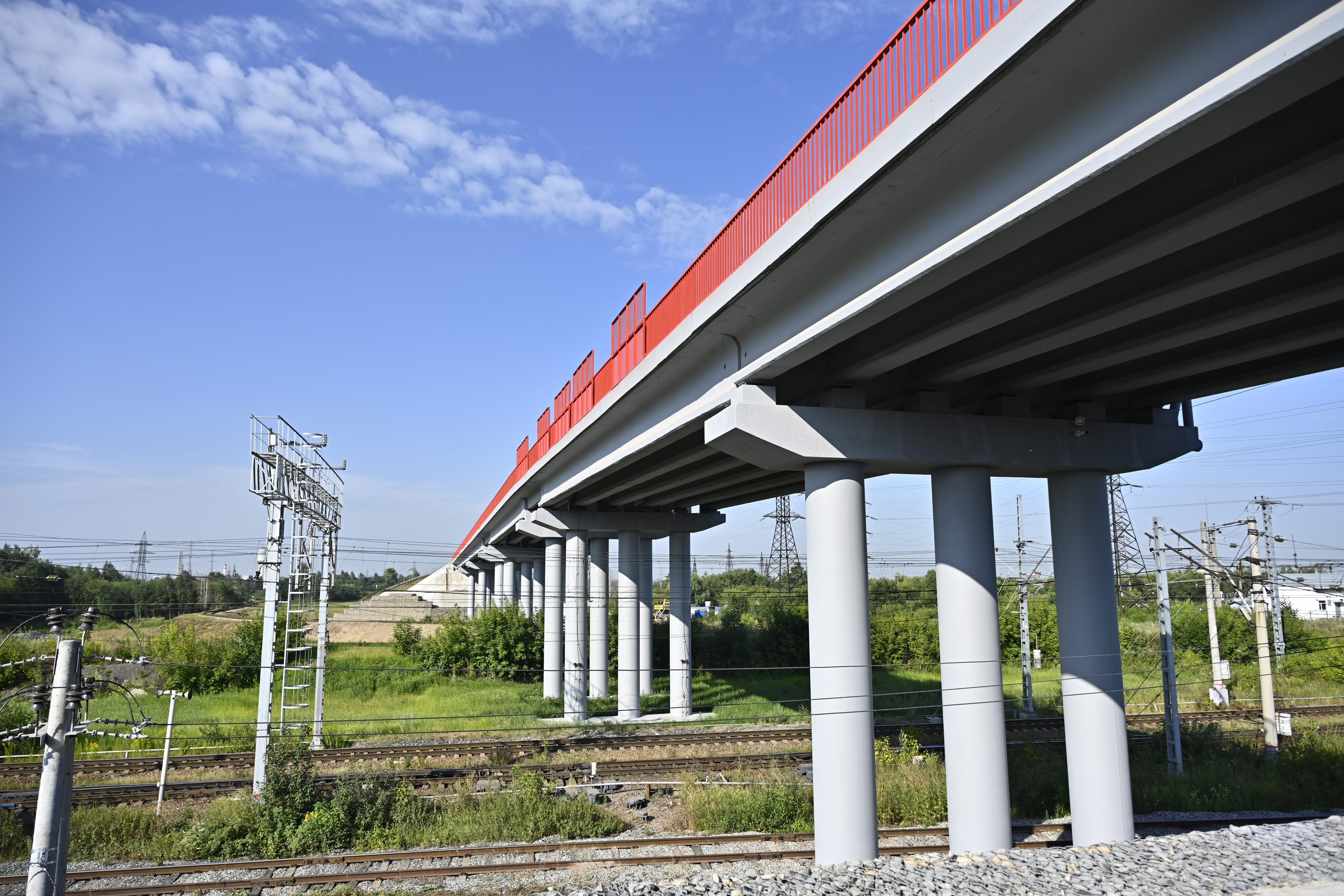 Параллельно ведутся работы по устройству подпорных стен, прокладке водоотводных систем, переустройству линий электропередачи и газопровода. Также продолжается устройство опор надземного пешеходного перехода.